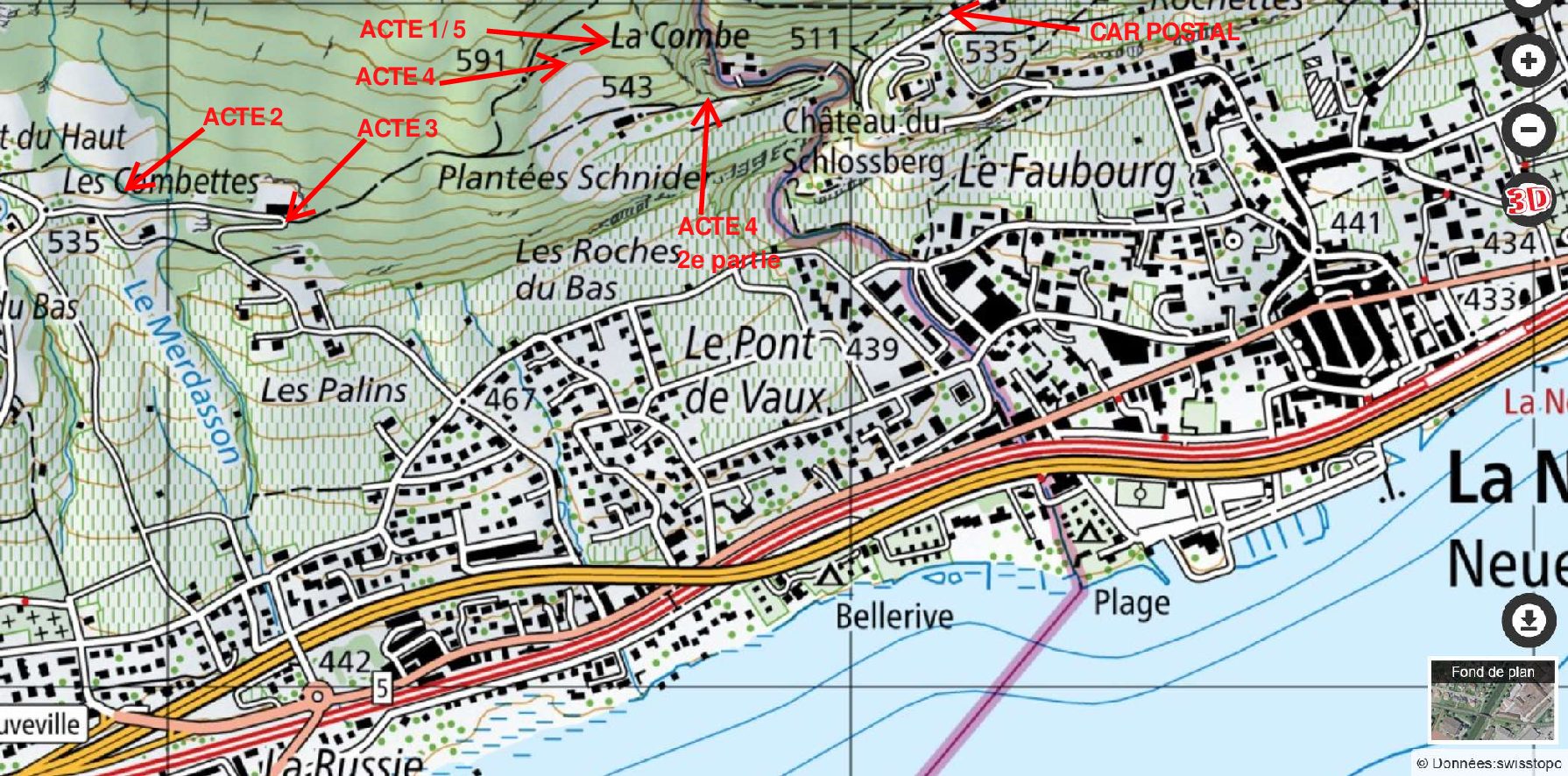 13h00 : bus postal jusqu’à l’arrêt La Neuveville Château (3 min.)