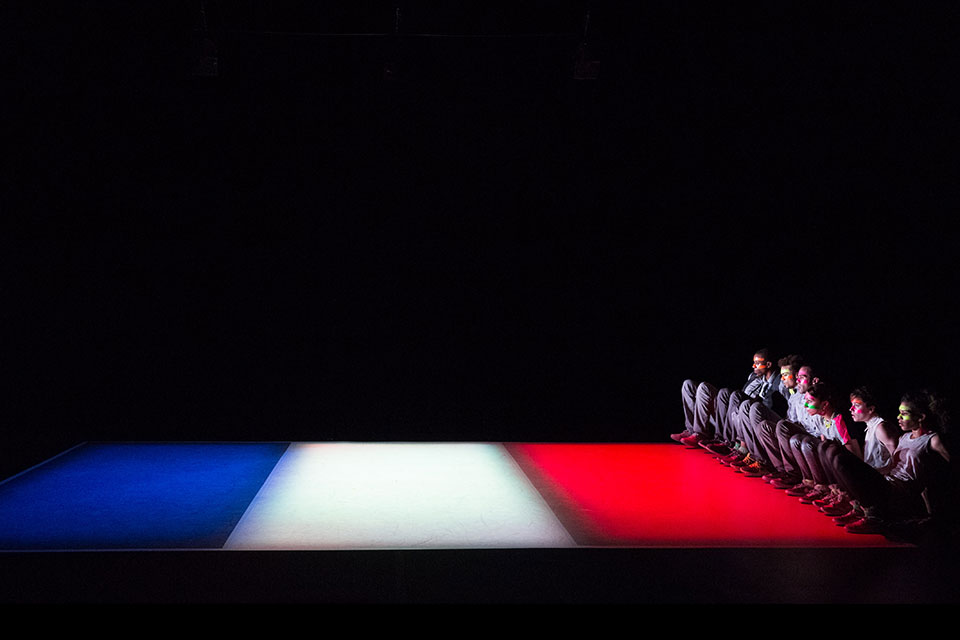 Au sol, un drapeau français : Bleu, blanc, rouge – liberté, égalité, fraternité – symbole du vivre ensemble. Les danseurs, qui forment à eux seuls